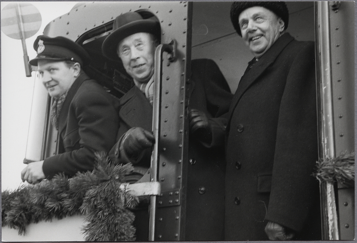 Titel: På loket till första eltåget på linjen mellan Söderhamn - Hudiksvall.