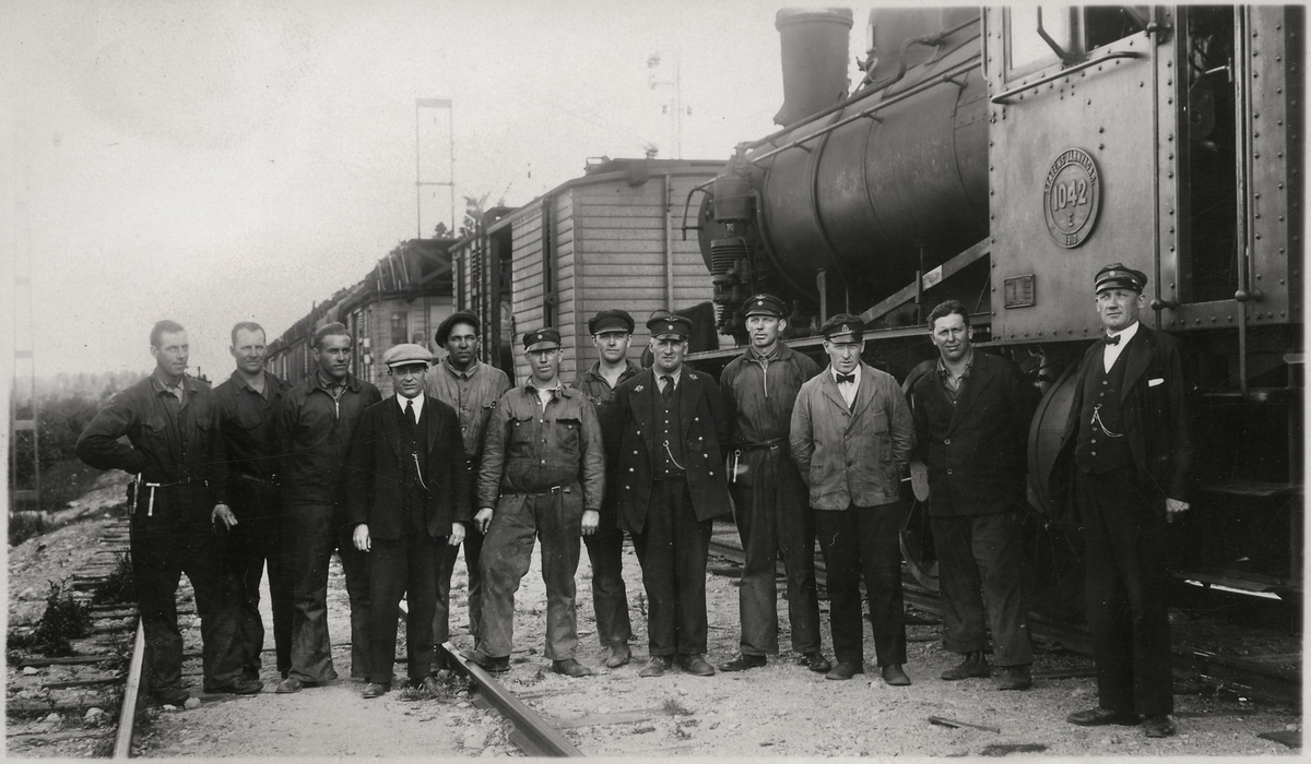 Montagetåget vid Hästveda. Ånglok Statens Järnvägar, SJ E 1042, tillverkat 1910.