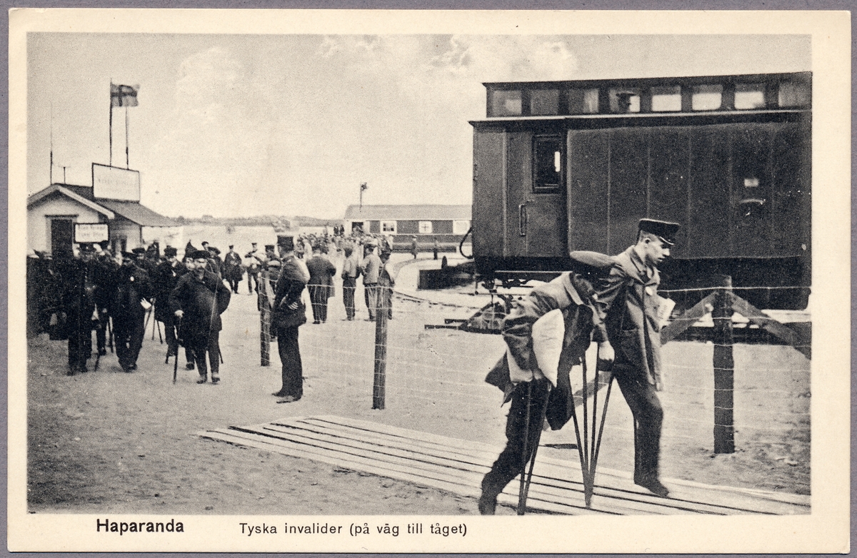 Tyska skadade soldater i Haparanda under Första världskriget, på väg till tåget.