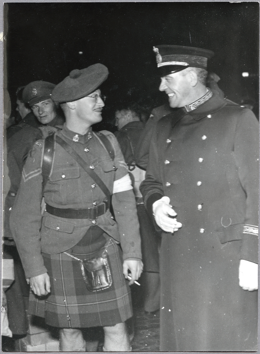Skotsk krigsfånge och Polismästare samspråkar under krigsfångeutväxling.