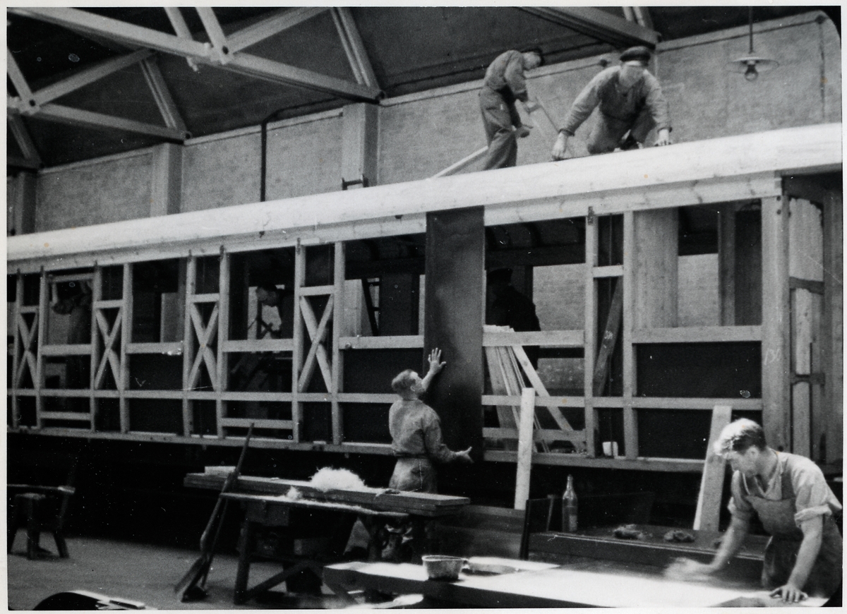 Verkstadsarbete i Blekinge Kustbanors, BKB, verkstad som senare togs över av Statens Järnvägar.