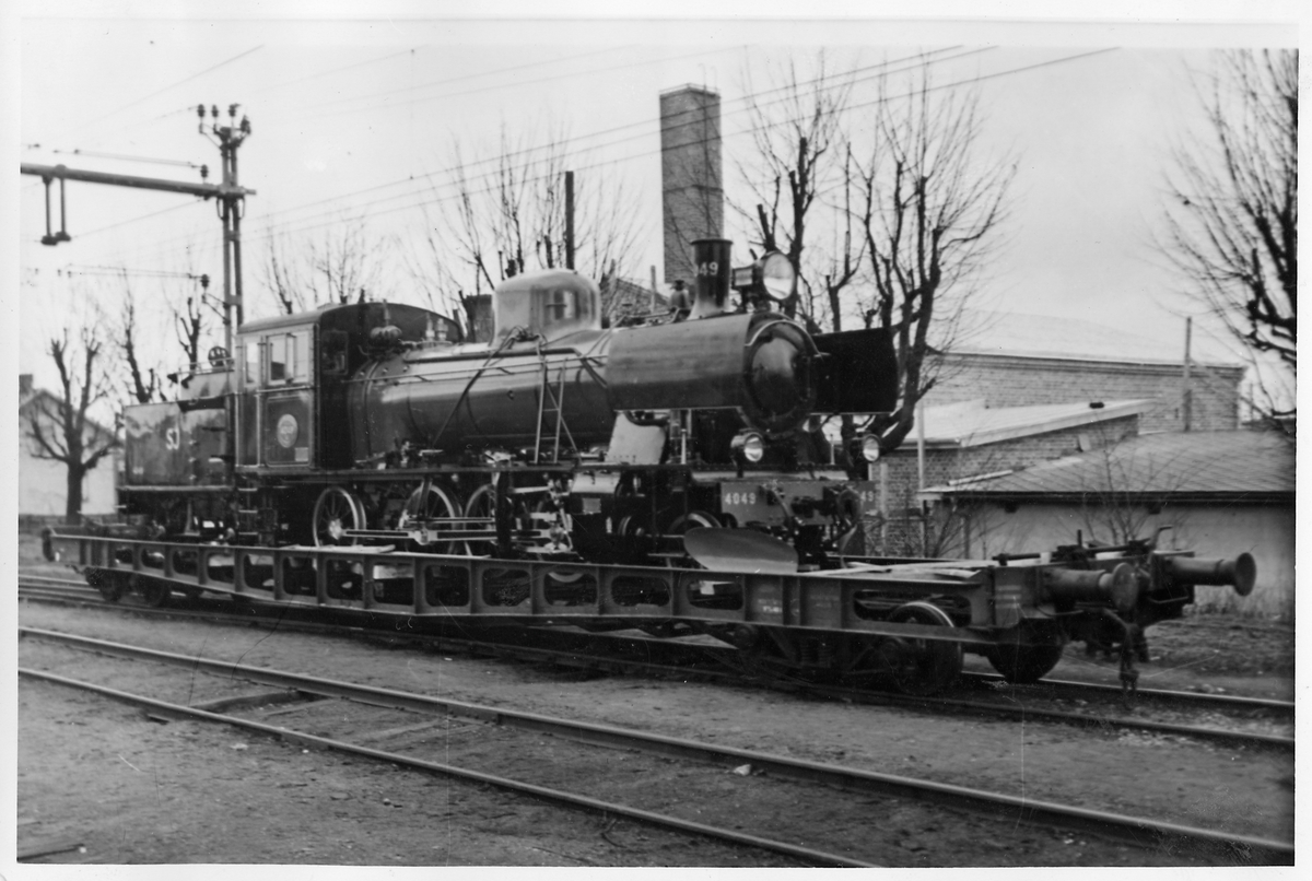 Statens Järnvägar, SJ Gt 4049 lastad på SJ Q37 i Motala.