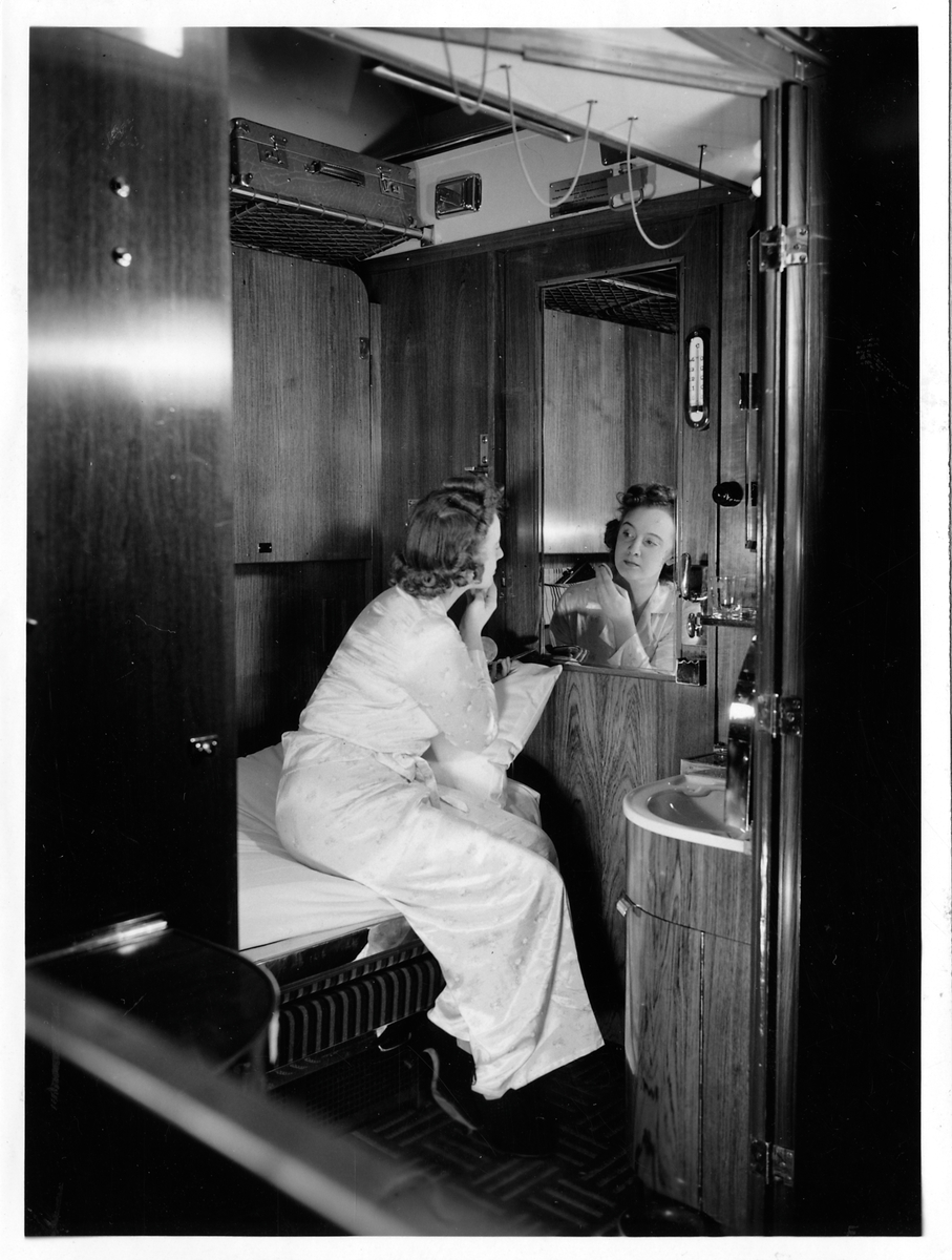 Resande med 1:a klass sovkupé. Statens Järnvägar, SJ ABo2c.