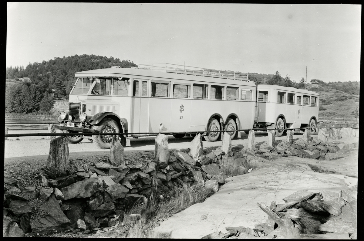 Tidaholm buss och släp. Statens Järnvägar, SJ buss 29 och SJ släp 103.