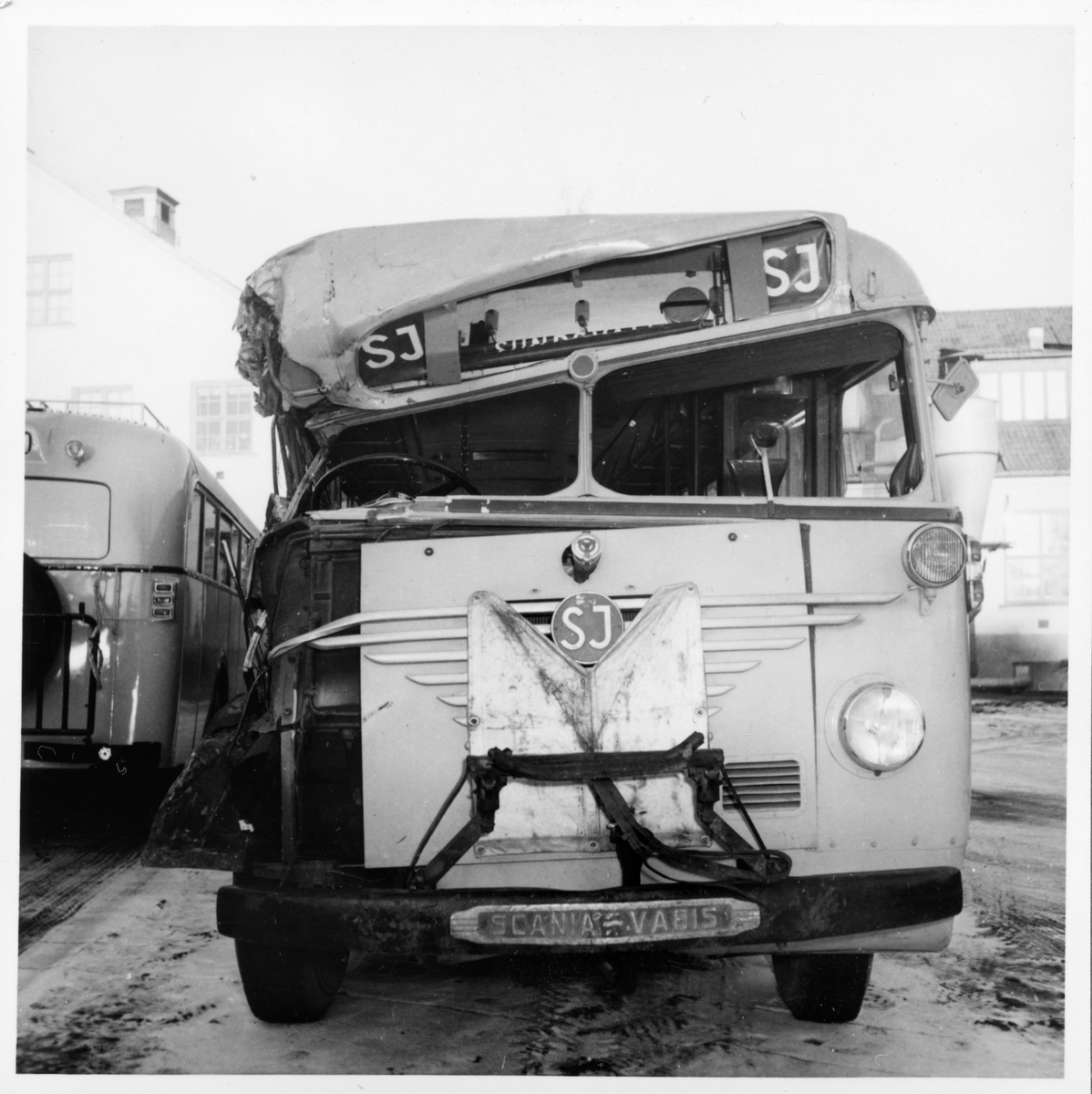 Titel: Krockskadad Scania Vabis. Statens Järnvägar, SJ.