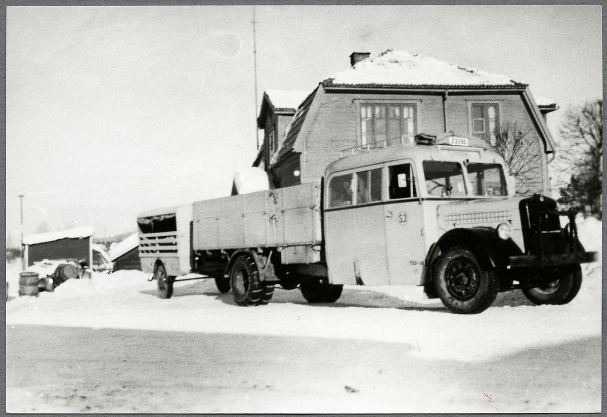 Statens Järnvägar, SJ buss 750, kombinerad buss och lastbil, i Ytterhogdal.