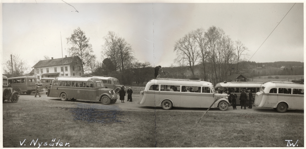 Titel: Bussar och resenärer vid Västra Nysäter.