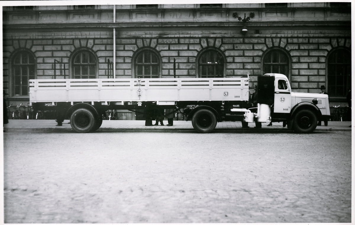 Statens Järnvägar, SJ lastbil 3053 och SJ släp 2580.