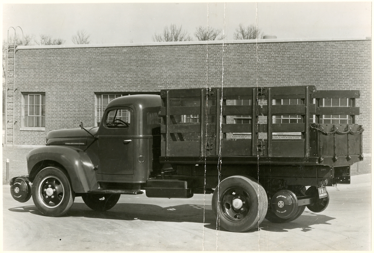 Titel: Lastbil med nedfällbara spårhjul för spårdrift. Auto-Railer.