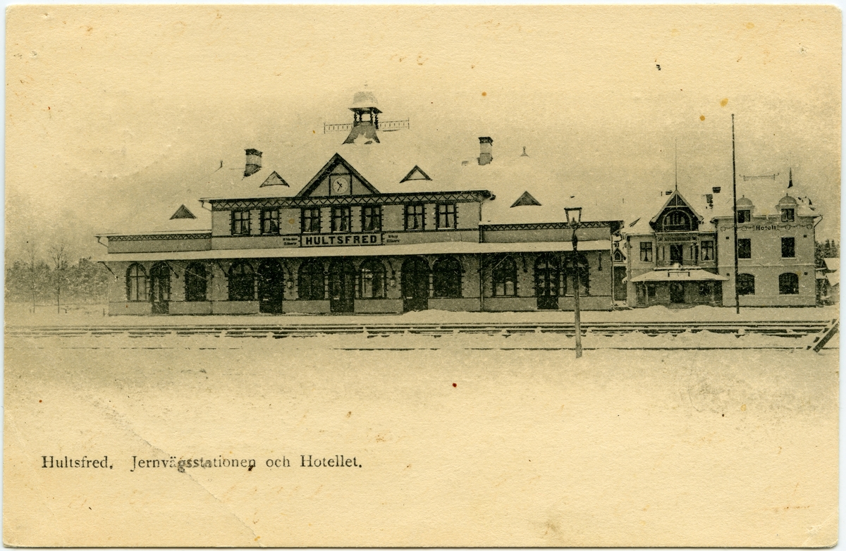 Titel: Järnvägsstationen och Hotellet i Hultsfred.