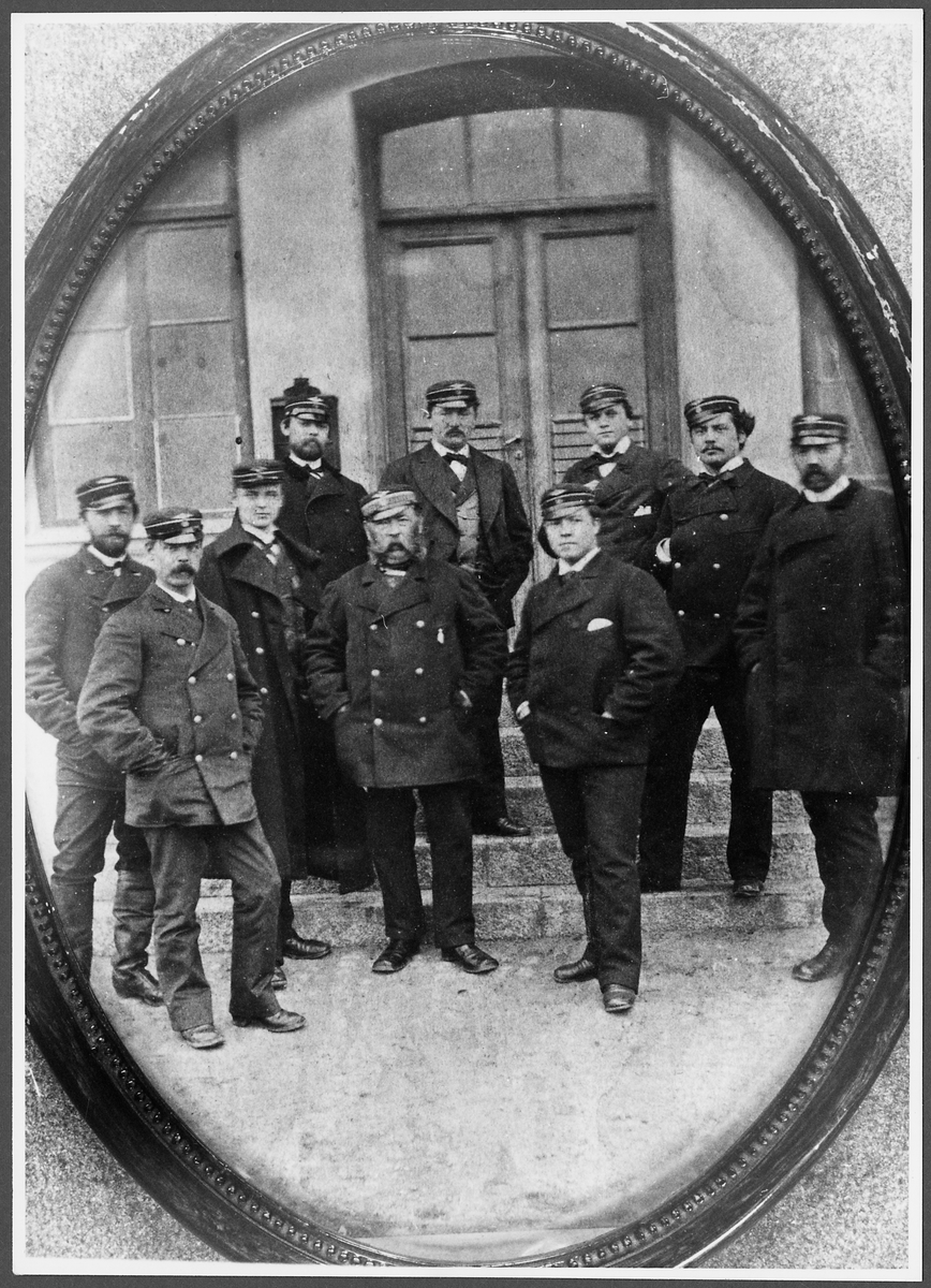Titel: Förste Stationsinspektorn i Sala tillsammans med övrig personal.