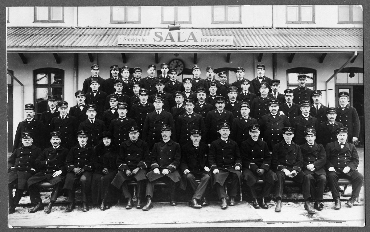 Personal vid Statens Järnvägar, SJ utanför Sala Järnvägsstation.