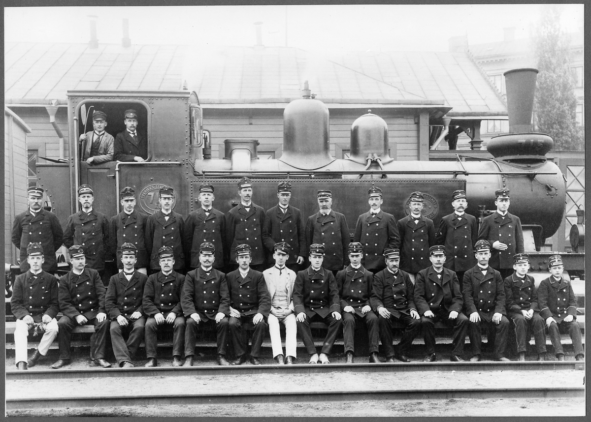 Statens Järnvägar, SJ Ke 715. Lokpersonal Söderlund och Nordblad, samt övrig personal vid Stockholm Södra.