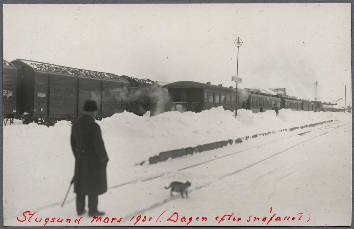 Efter snöfall i Stugsund i mars 1931, Statens Järnvägars kolvagn SJ Lg 32254.