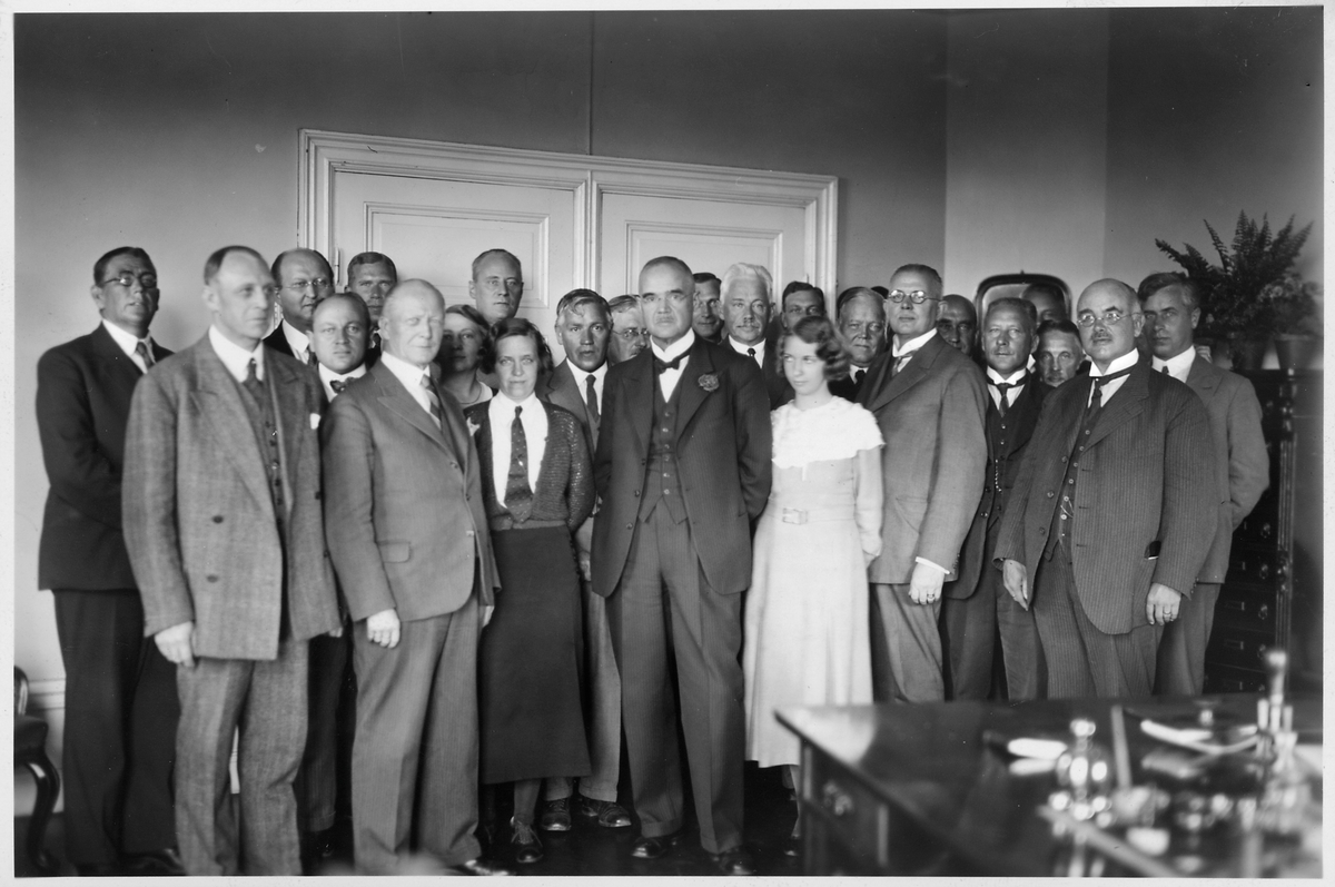 Maskindirektör Karl Otto Sundkuist uppvaktas vid sin avgång. Statens Järnvägar, SJ.