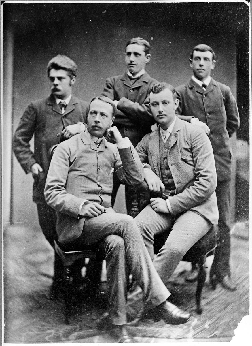 Ingenjören H. Wennerström med fyra engelska ingenjörer: Williams, Broxup, Strutt och Jones vid engelsmännens järnvägsbygge mellan Luleå och Ofoten.