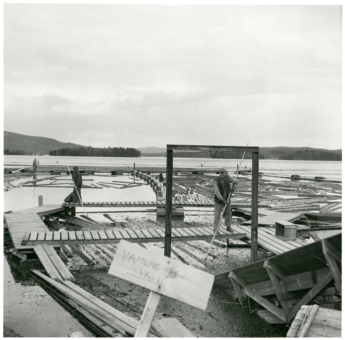 Titel: Inmatning av timmer till sågverk vid Hagge Skogsförvaltning.