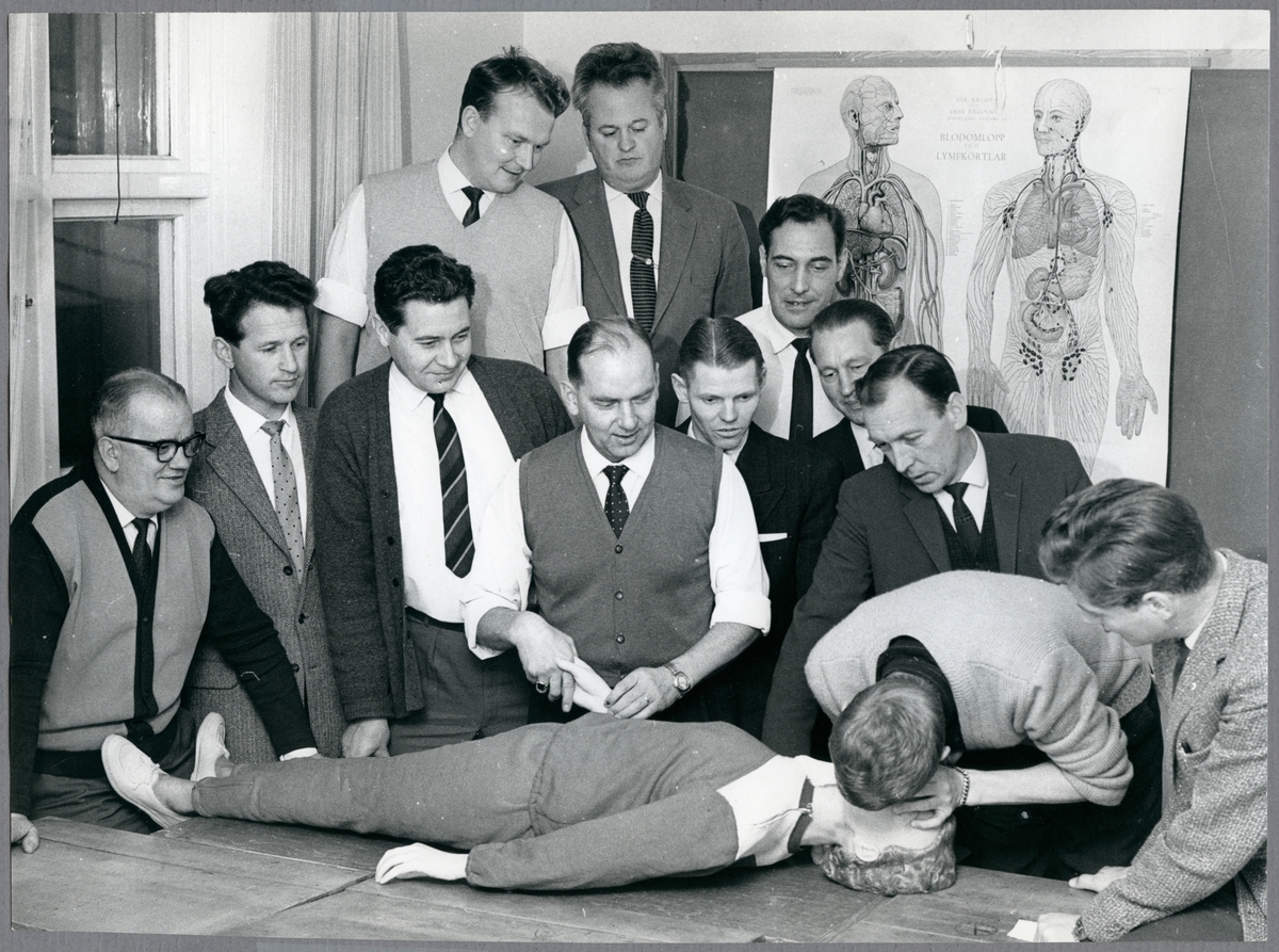 Första Hjälpen kurs på Guldsmedshyttans Herrgård för Trafikaktiebolaget Grängesberg - Oxelösunds Järnvägar, TGOJ, personal.