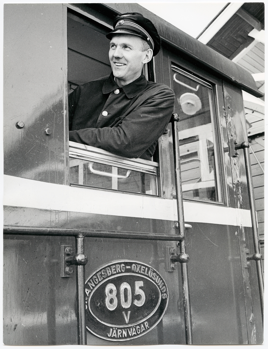 Trafikaktiebolaget GrängesbergOxelösunds Järnvägar, TGOJ V 805 med lokförare Åke Eliason.