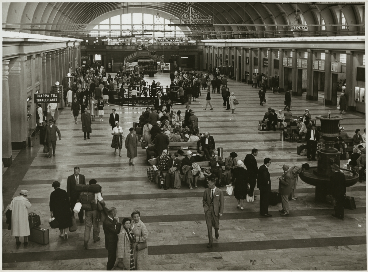 Titel: Resenärer inne på Stockholms Centralstation 1962.