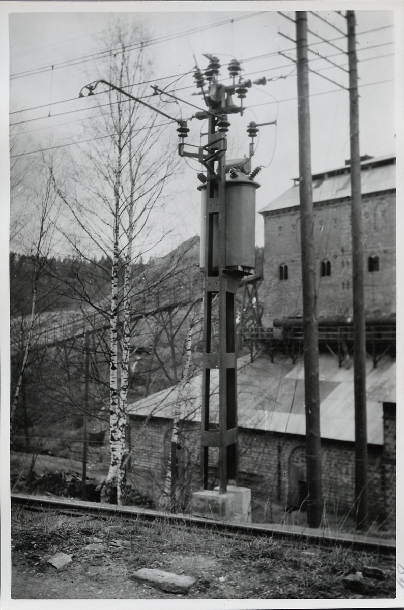 Titel: Sugtransformator och sektionsavskiljare. Masugn vid Stens bruk i bakgrunden.