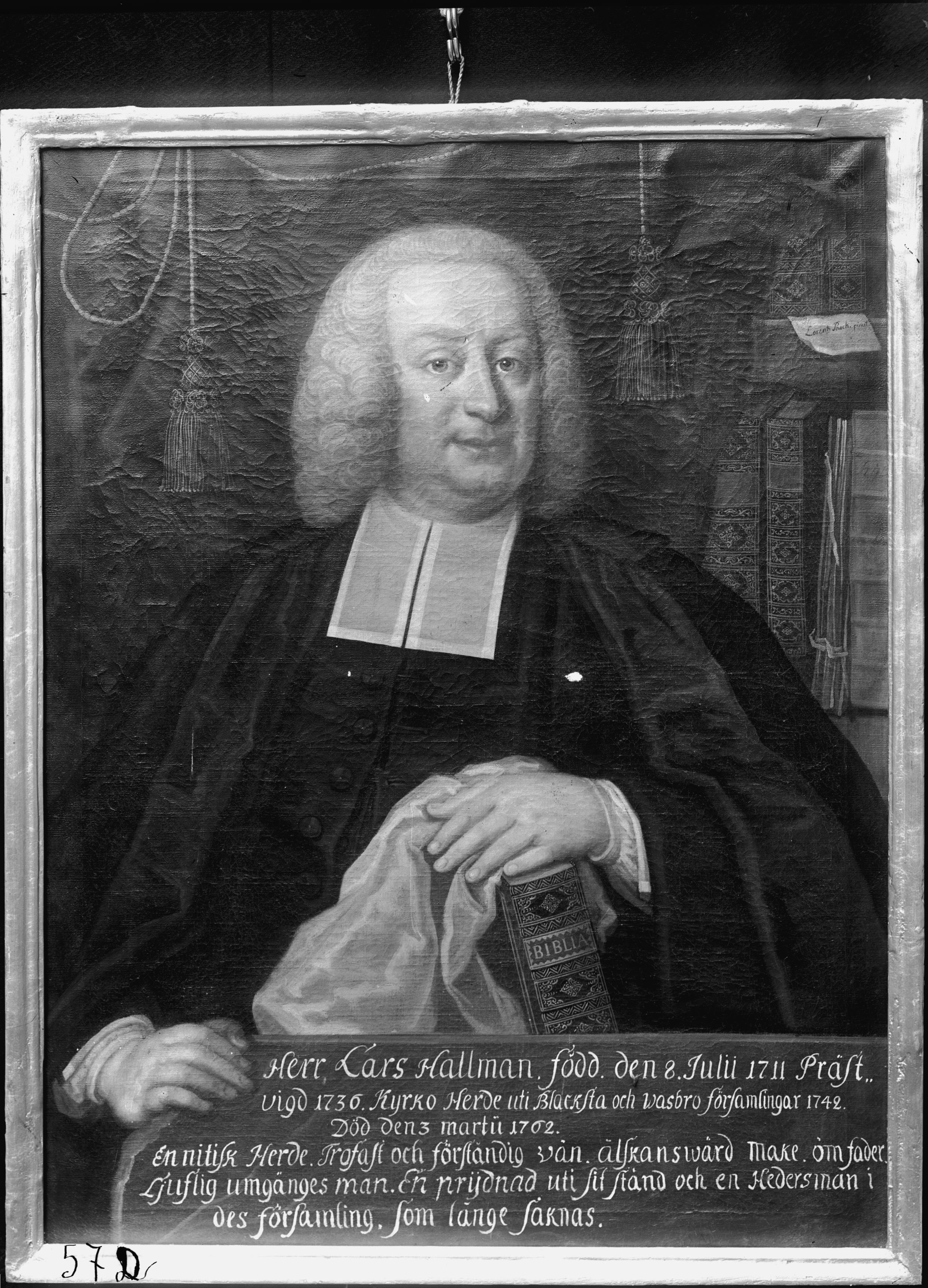 Porträtt föreställande kyrkoherden Lars Hallman, död 1762.