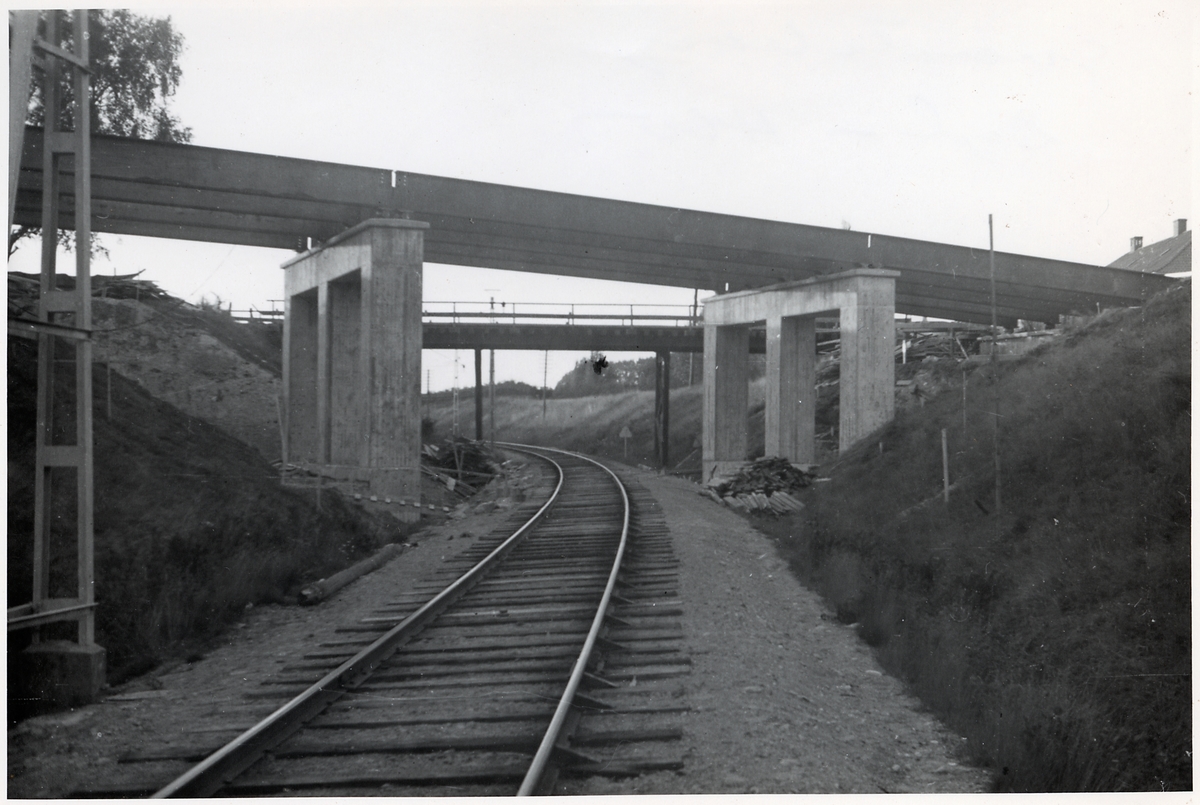 Pågående brobygge vid Svarteborg, på sträckan mellan Dingle och Hällevadsholm. Strax före elektrifieringen av sträckan.