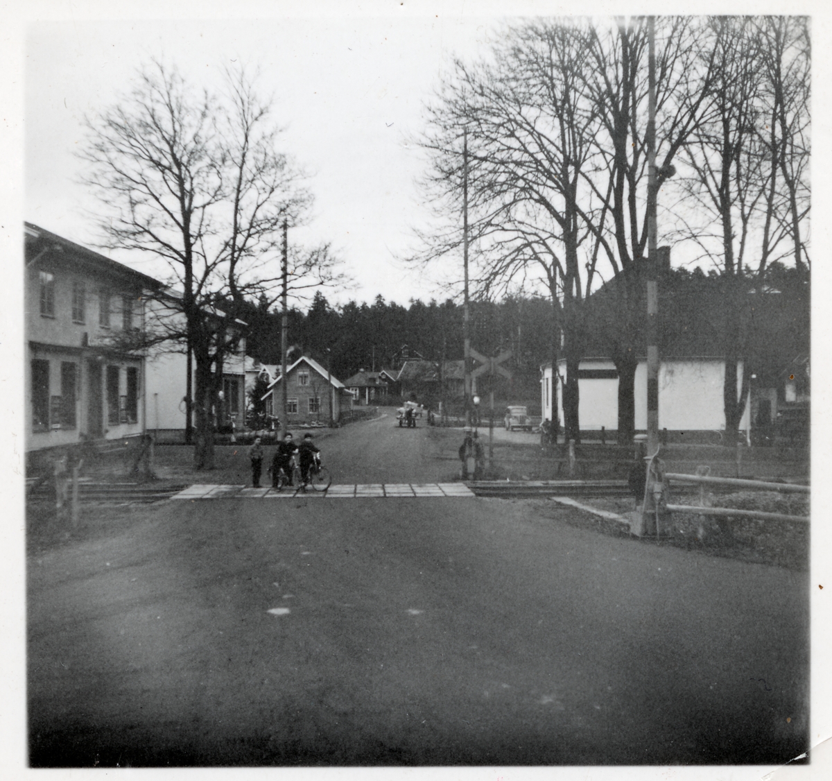 Titel: Järnvägsövergång i Mörlunda med barn på spåret.