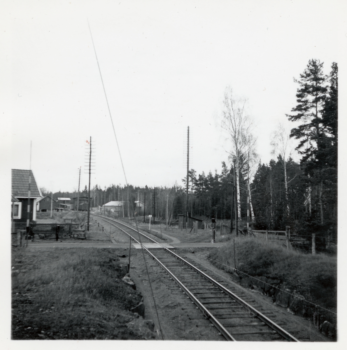 Titel: Järnvägsövergång i Lillsjödal med bommar.