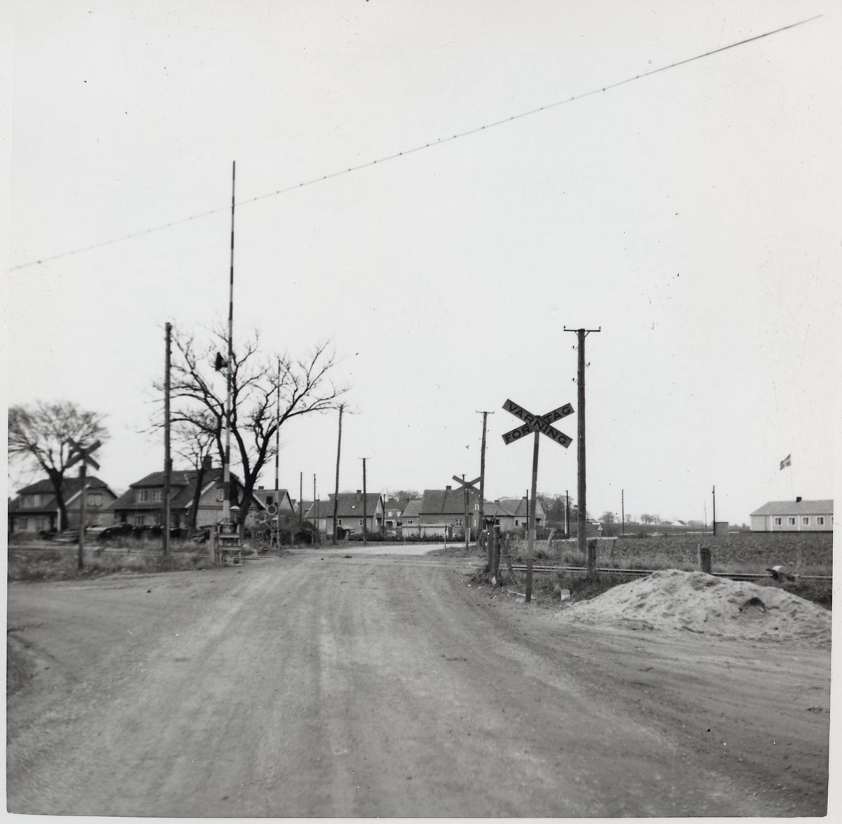 Järnvägsövergång vid norra infarten till Hammenhög station, på sträckan mellan Gärsnäs och Borrby.