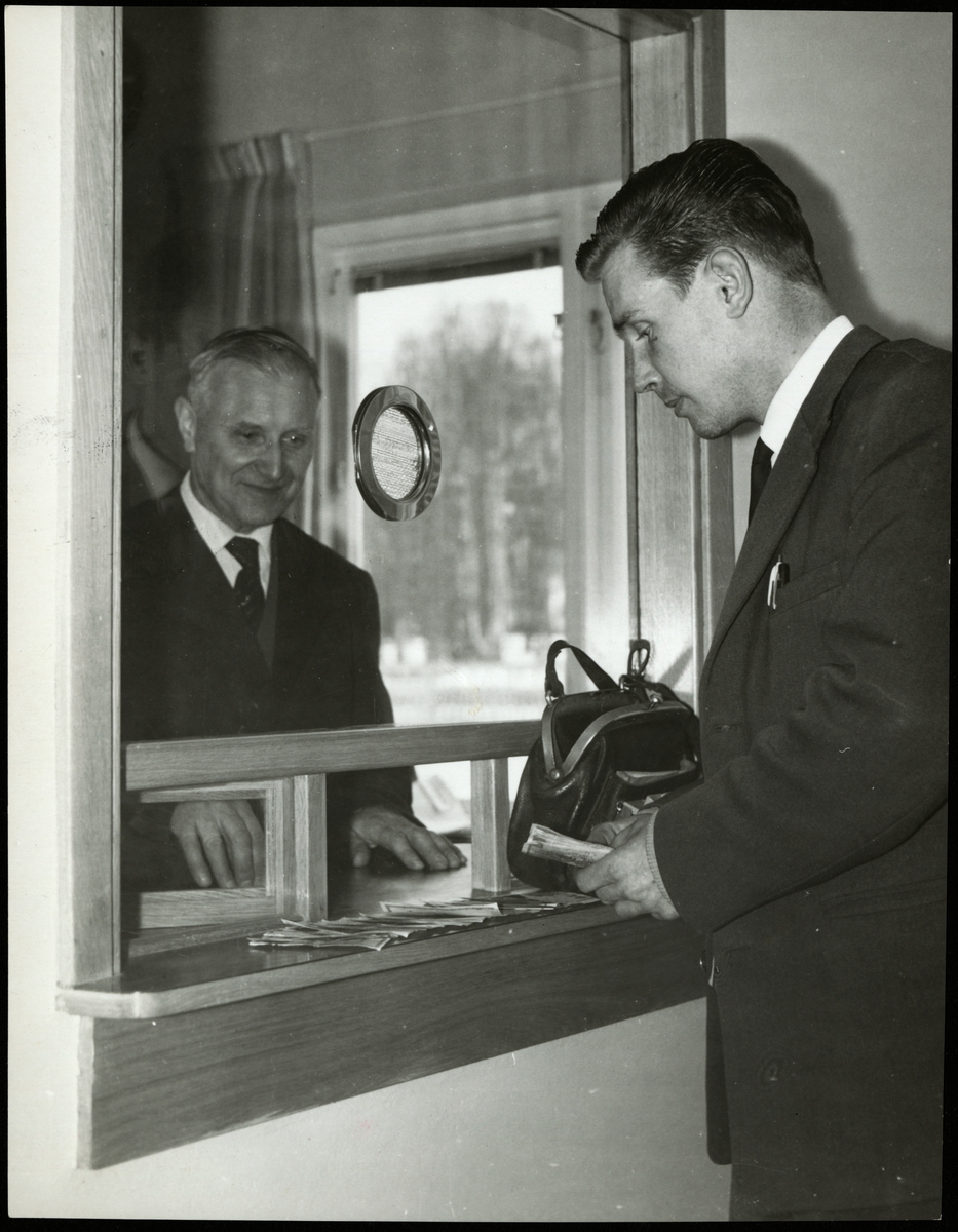 Bilförman Karl Fredriksson, till vänster, och busschaufför Lars Gustavsson i Nyköpings expeditionslokal.