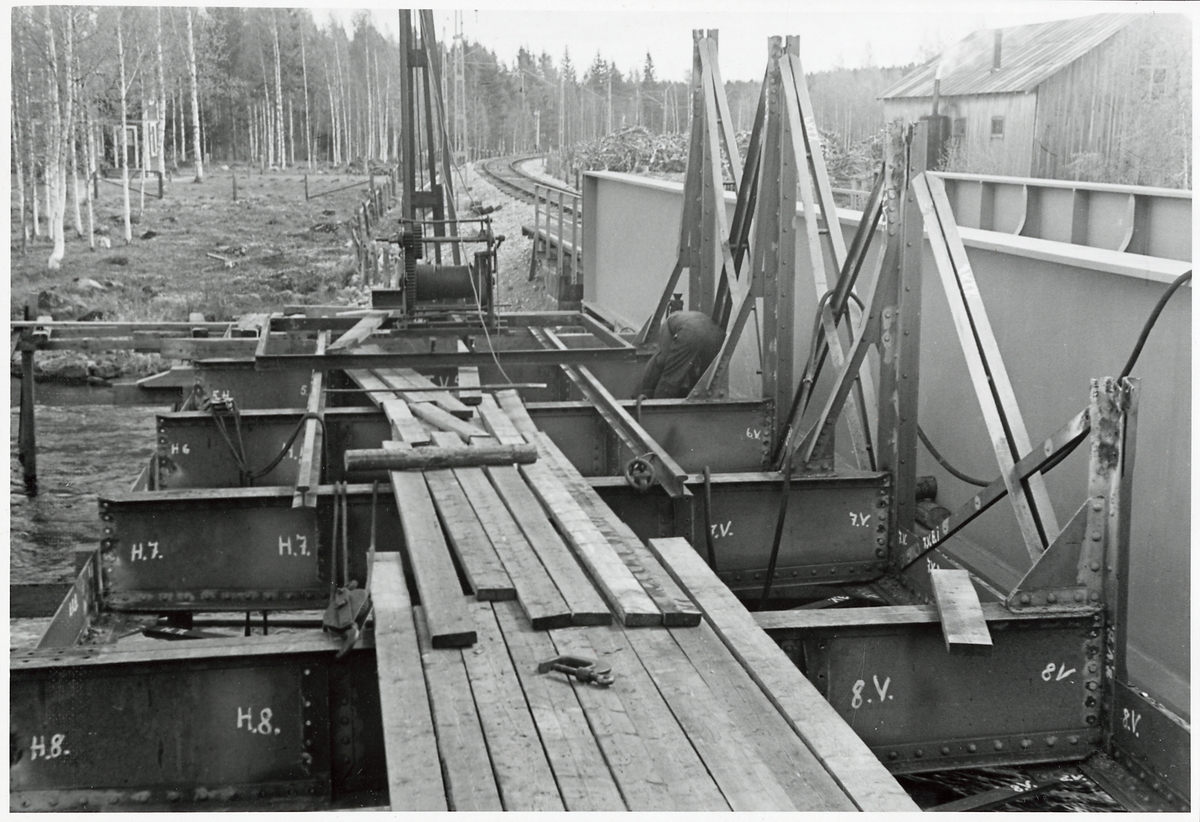 Titel: Gamla bron under nedmontering i Kolforsen.