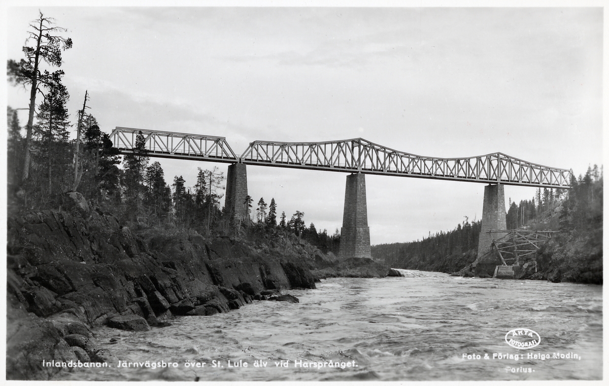 Titel: Bron över Stora Lule Älv ovanströms Harsprånget längs Inlandsbanan.