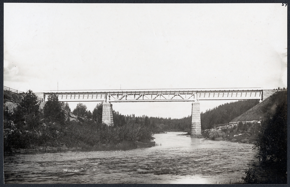 Titel: Järnvägsbro över Avaforsen vid Stråkan på linjen mellan Morjärv och Karungi.