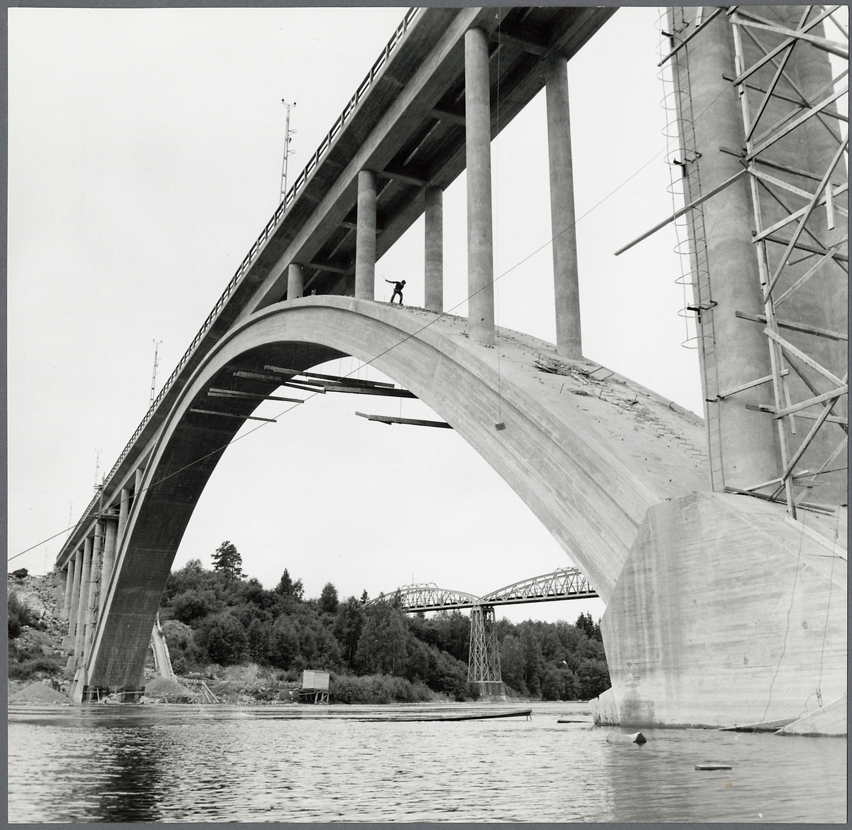 Titel: Järnvägsbro över Indalsälven vid Ragunda. Den gamla bron syns i bakgrunden.