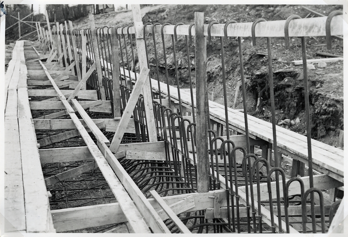 Uppförande av stödmur för järnvägsbanken vid byggnationen av ny järnvägsviadukt över Norrtullsgatan. Belägen ca 100 m öster om östra landfästet i nya vidaukten.