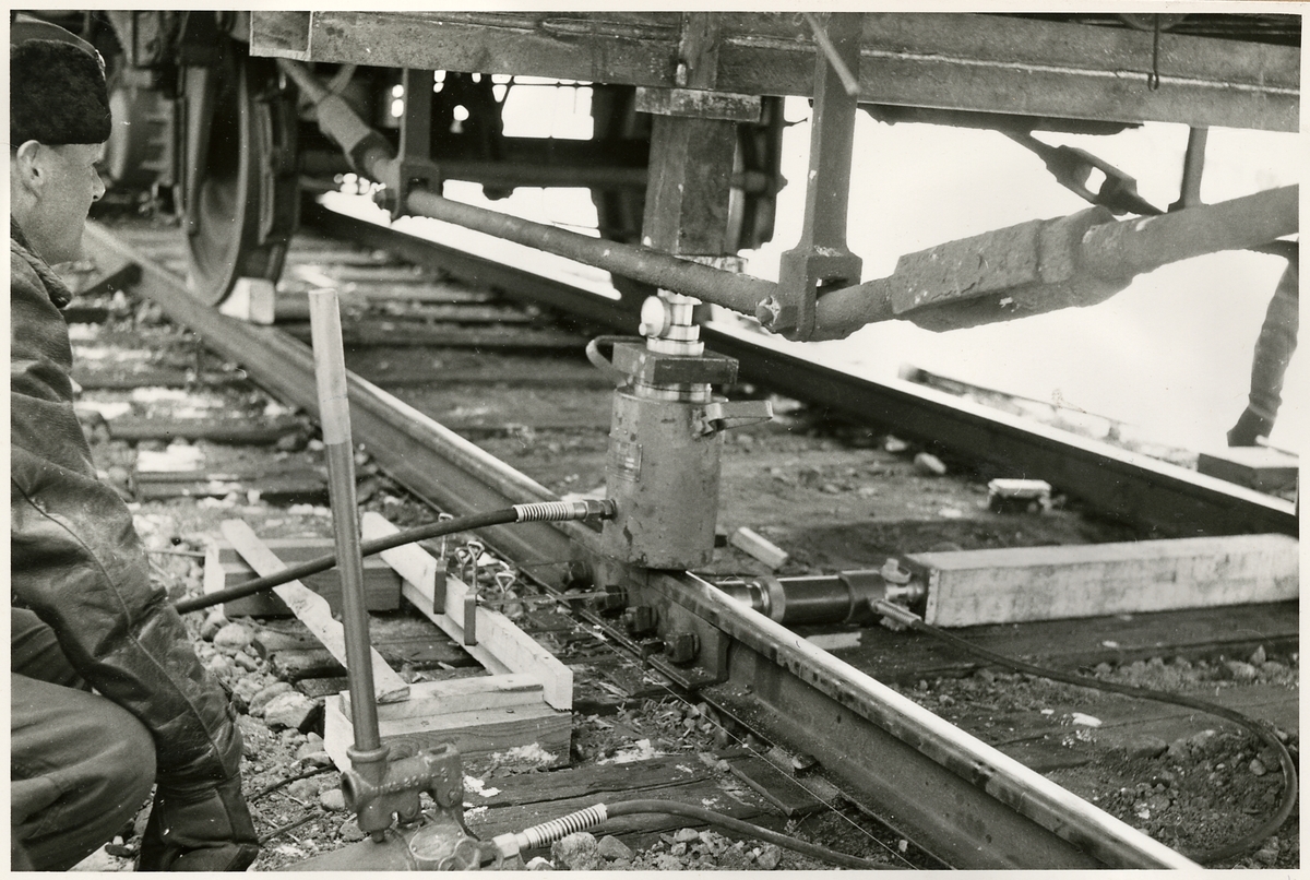 Banarbete efter urspårning av tåg 93, Nordpilen, på sträckan mellan Simeå och Undersvik 1956-03-27.