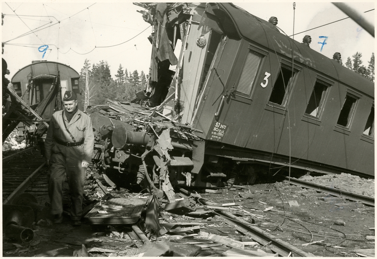 Tåg 93, 'Nordpilen', urspårat i Granbo 1956-03-29.