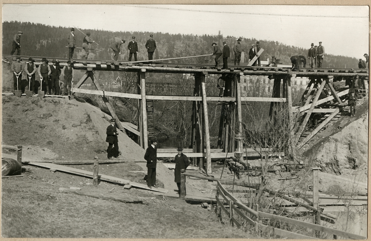 Arbete med ny järnvägsbro efter raset vid Sidsjöbäcken, Sundsvall.