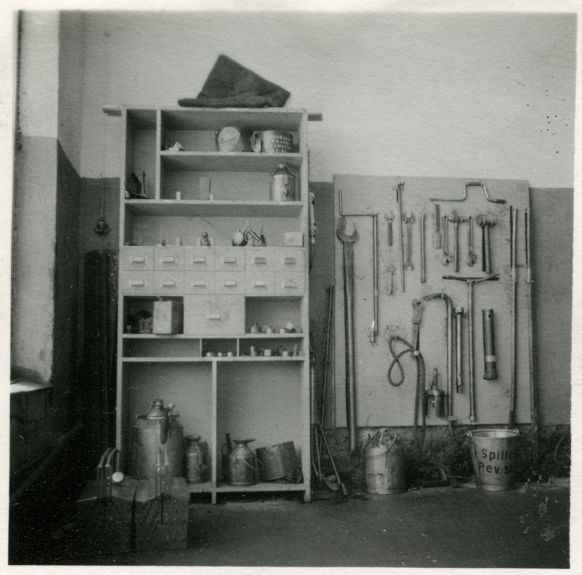 Verktygsskåp och verktygstavla.