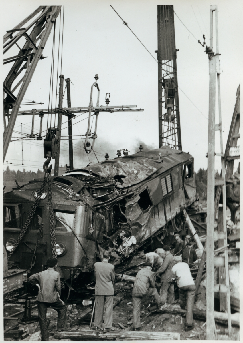 Statens Järnvägar, SJ D 539 lyfts efter olyckan i Pålsboda 1951.