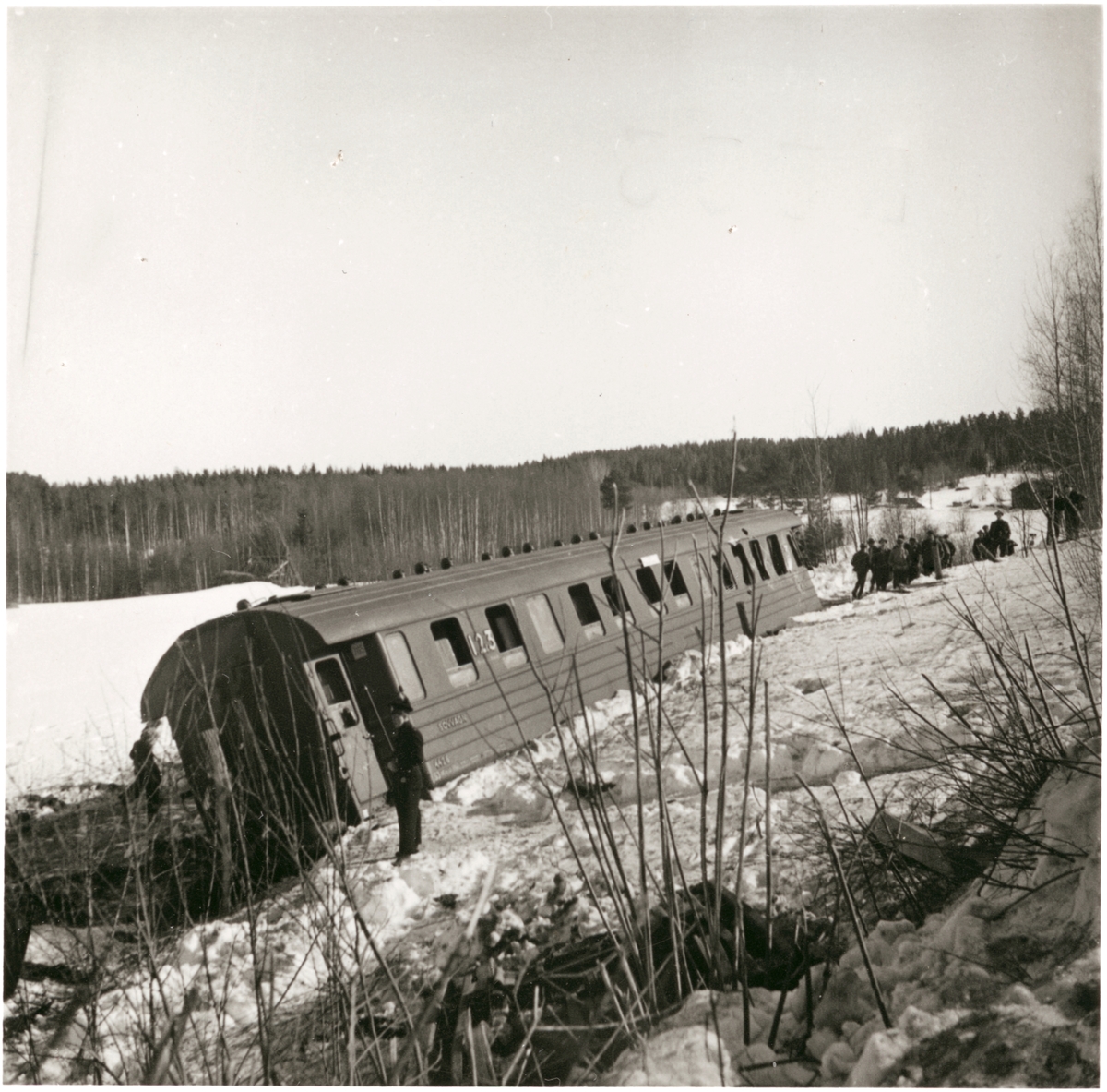 Titel: En sovvagn efter urspårningen i Granbo.