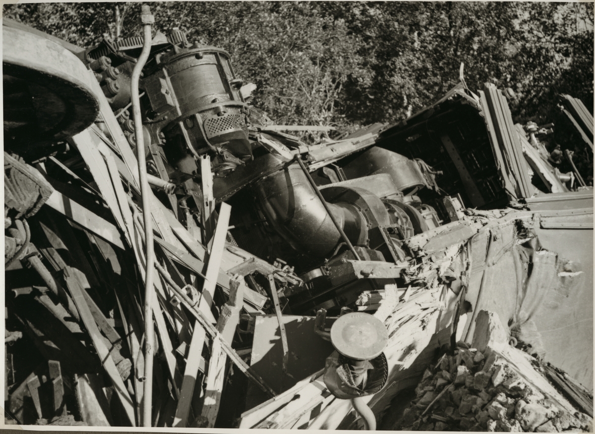 Närbild på skadat lok efter ras på linjen mellan Narvik och Riksgränsen i närheten av Straumsnes.