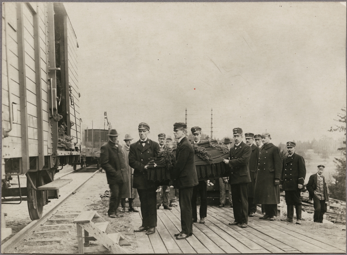 Titel: Kista med en av de omkomna från Getåolyckan.