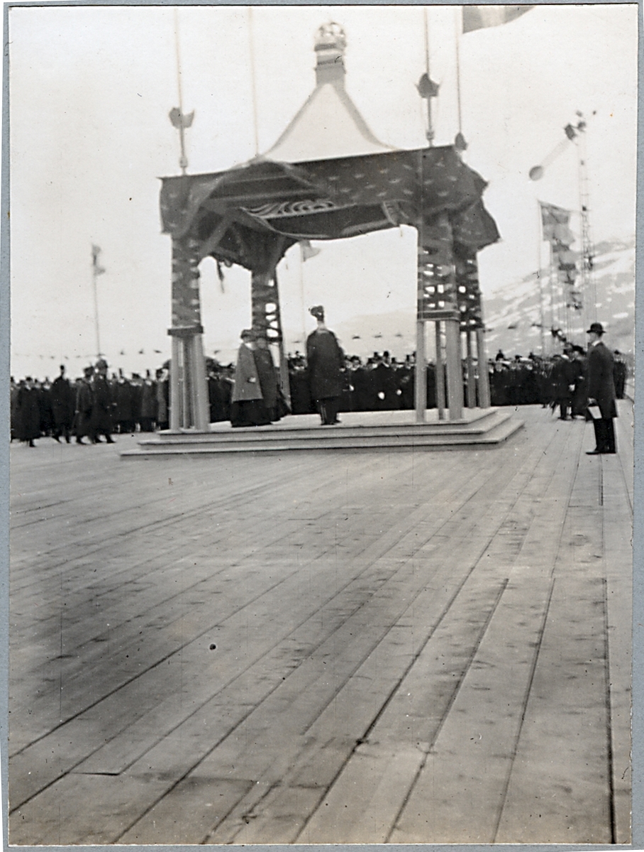Titel: Invigning vid Riksgränsen av järnvägen.