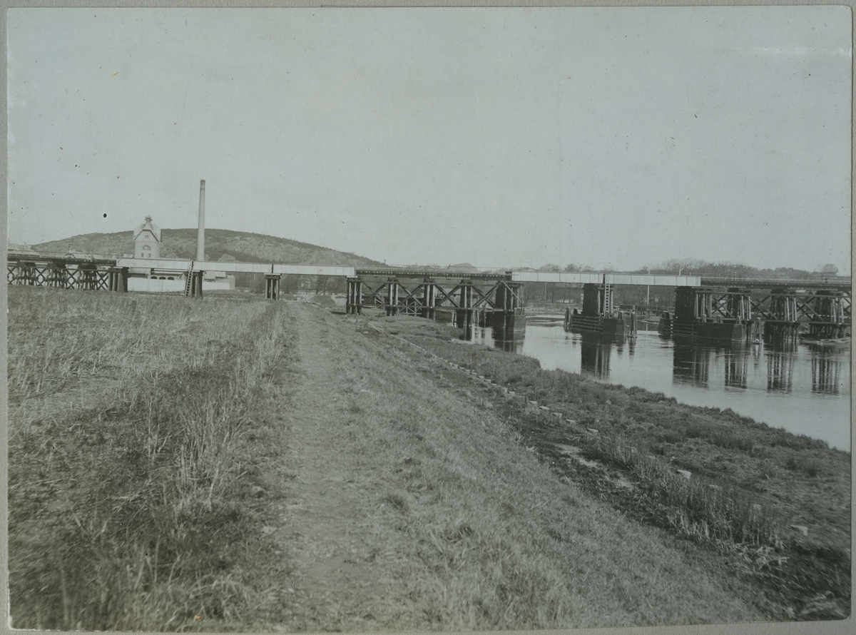 Titel: Provisorisk viadukt vid Göteborgs slakthus och över Säveån. ( Olskroken )