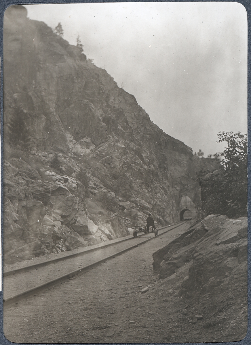 Titel: Album med fotografier från Bohusbanan. Tunnelparti vid Hällungen. (Stora Hällungen)