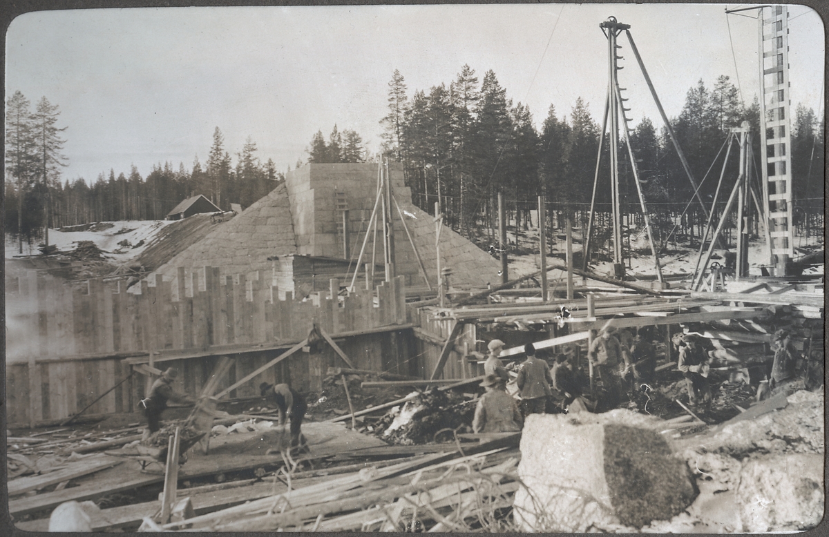 Titel: Gladabäckstrumman. Gjutning av betonggrund december 1921.