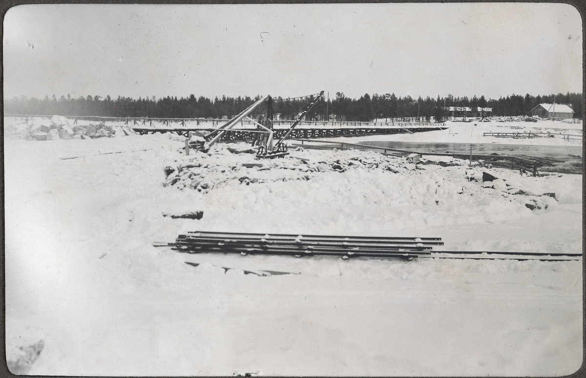 Titel: Bro över Ume-älv. Östra älvfåran feb 1923.