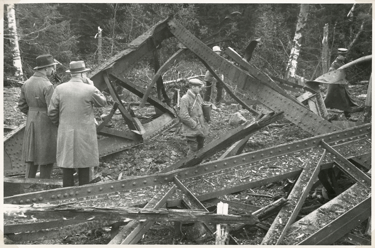Titel: Bombningen vid Svartälvs Järnväg. Efter 250 kg:s flygbomb.